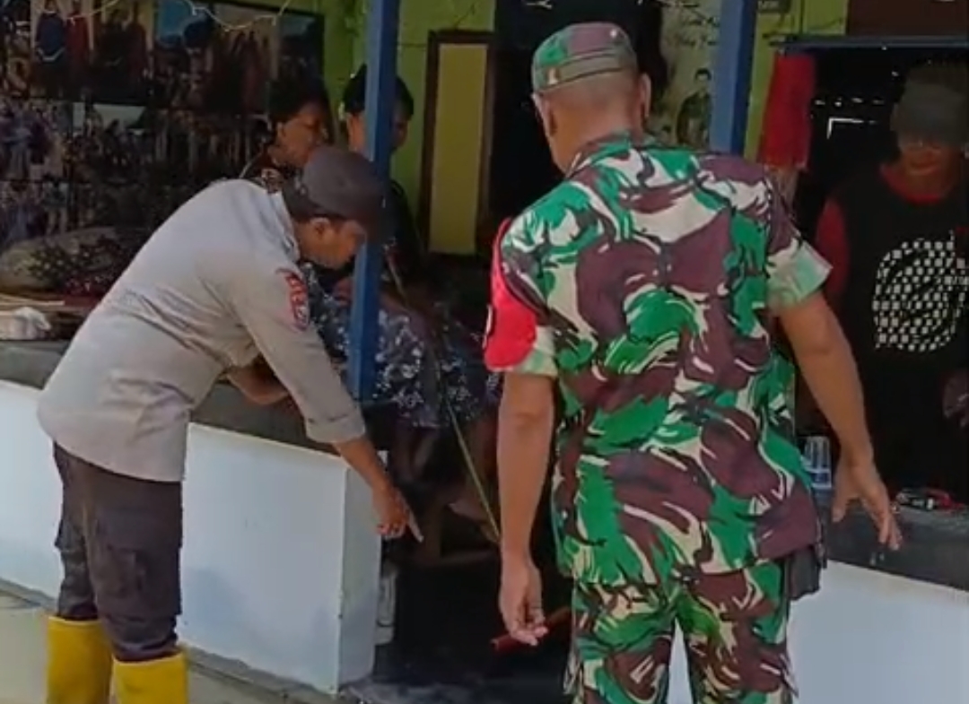 Kondisi tersebut tidak lepas dari perhatian Bhabinkamtibmas Desa Laden Aipda Dodik Windah. Ia bersama Babinsa turun langsung ke lokasi untuk mengecekan keadaan warga binaannya yang terdampak luapan air sungai.