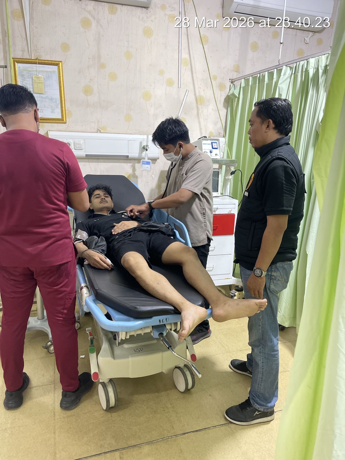 Saat melintas di area patroli, petugas mendapati kerumunan warga dan seorang pemuda yang tampak dalam kondisi darurat medis. Petugas dengan sigap membantu melepaskan helm korban agar sirkulasi udara lebih lancar. Tanpa menunggu lama, petugas langsung memutuskan untuk menaikkan korban ke atas sepeda motor dengan posisi berboncengan tiga agar korban tetap terjaga posisinya, lalu dikawal ketat menuju RS Mart Pamekasan guna mendapatkan pertolongan medis segera.