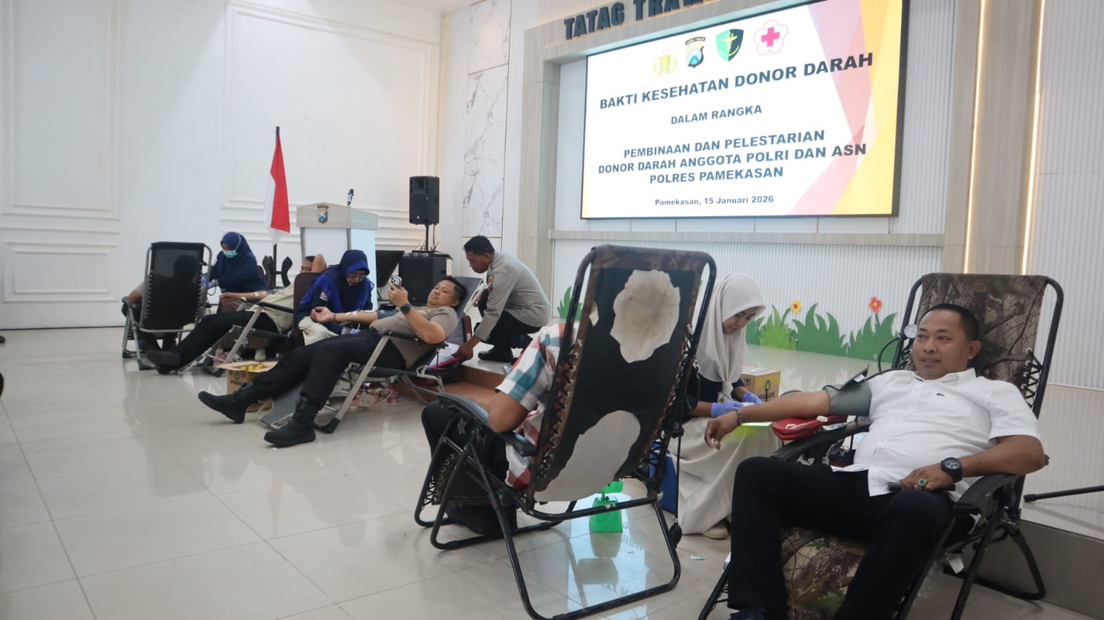 Kegiatan donor darah ini juga rutin dilakukan di berbagai event yang digelar Polres Pamekasan dengan menggandeng PMI Pamekasan.