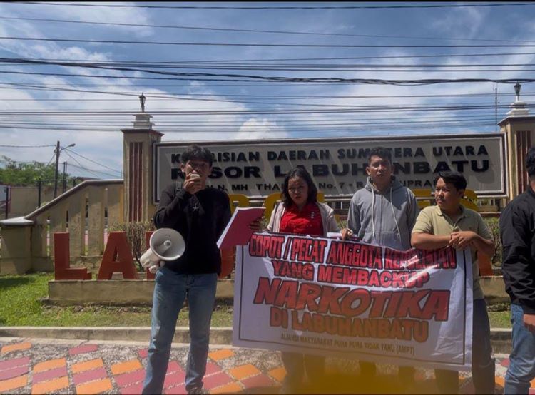 Labuhanbatu, Haksuara – Sesuai keterangan PAUJI Alias Uji dalam putusan pengadilan negri Rantauprapat no.776 yang mengatakan bahwa barang bukti 100 butir pil ekstasi merk telepon tersebut milik ICAL, selain itu video yang viral di media sosial pada bulan Juni 2025 yang memperlihatkan dugaan transaksi narkoba oleh saudara ICAL dengan salah seorang yang tidak dikenal, akan tetapi terhitung sejak bulan Maret 2025 hingga Januari 2026 saudara ICAL tidak pernah dilakukan proses hukum, oleh karena itu ALIANSI MASYARAKAT PURA-PURA TIDAK TAHU (AMPT) LABUHANBATU melakukan aksi unjuk rasa didepan polres Labuhanbatu, 15/01/2026.
