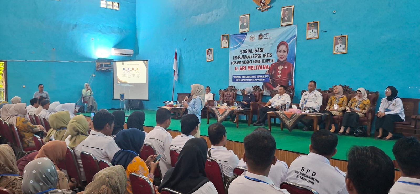 Lahat,- Badan Gizi Nasional (BGN) Republik Indonesia melaksanakan sosialisasi program makan bergizi gratis bersama Anggota Komisi IX DPR- RI, Ir Sri Meliyana yang mengambil tema ” Bersama mewujudkan gizi berkualitas untuk generasi sehat Indonesia”, bertempat di Desa Gunung Agung kecamatan Merapi Barat kabupaten Lahat provinsi Sumsel. Rabu 12 November 2025.