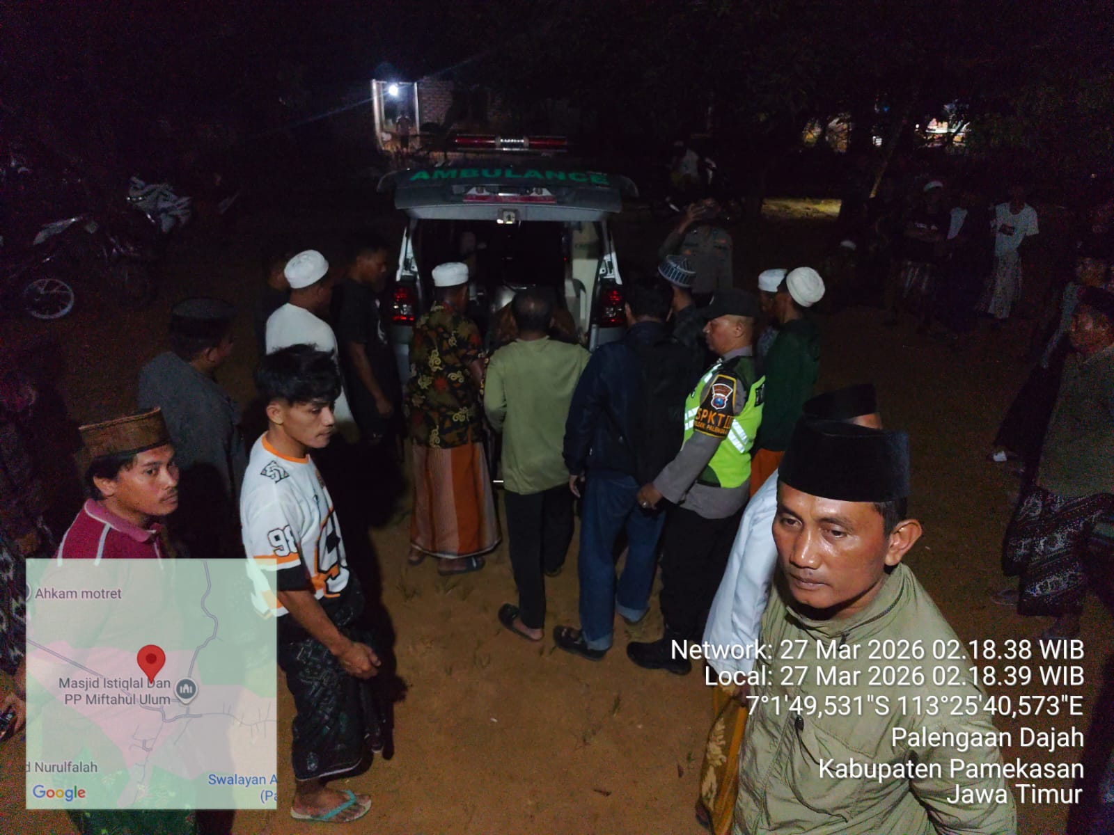 PAMEKASAN – Aparat Kepolisian Resor Pamekasan melalui Polsek Palengaan mengevakuasi sesosok mayat laki-laki berinisial B (55), warga Dusun Brambang, Desa Pasanggar, Kecamatan Pegantenan, yang ditemukan meninggal dunia di sebuah rumah warga di Dusun Angsokah Timur A, Desa Palengaan Daja, Kecamatan Palengaan, pada Kamis (26/3/2026) malam.