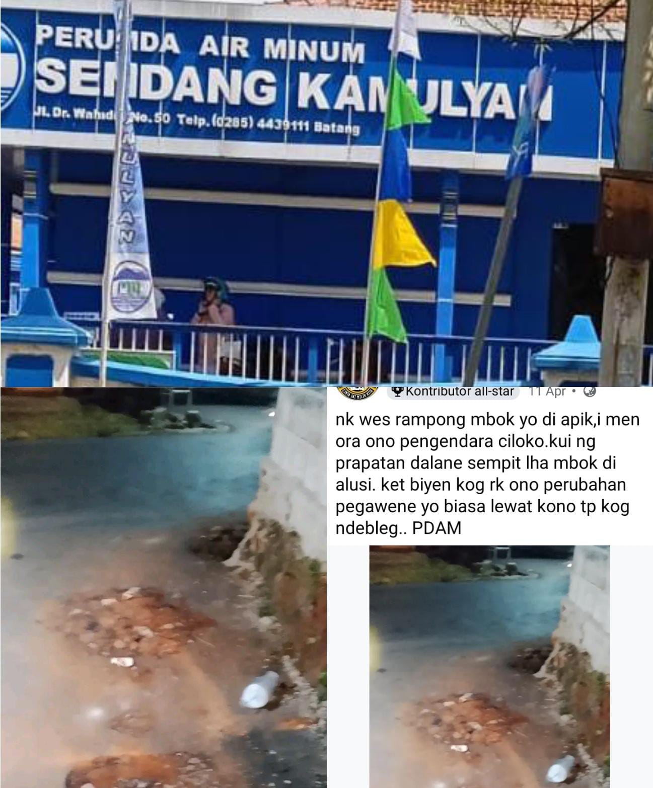 BATANG – Perumda Air Minum (PDAM) Sendang Kamulyan Kabupaten Batang memberikan penjelasan menanggapi keluhan masyarakat di media sosial maupun grup lainnya terkait bekas galian perbaikan pipa yang belum dikembalikan ke kondisi semula, baik berupa pengaspalan maupun pengecoran beton.