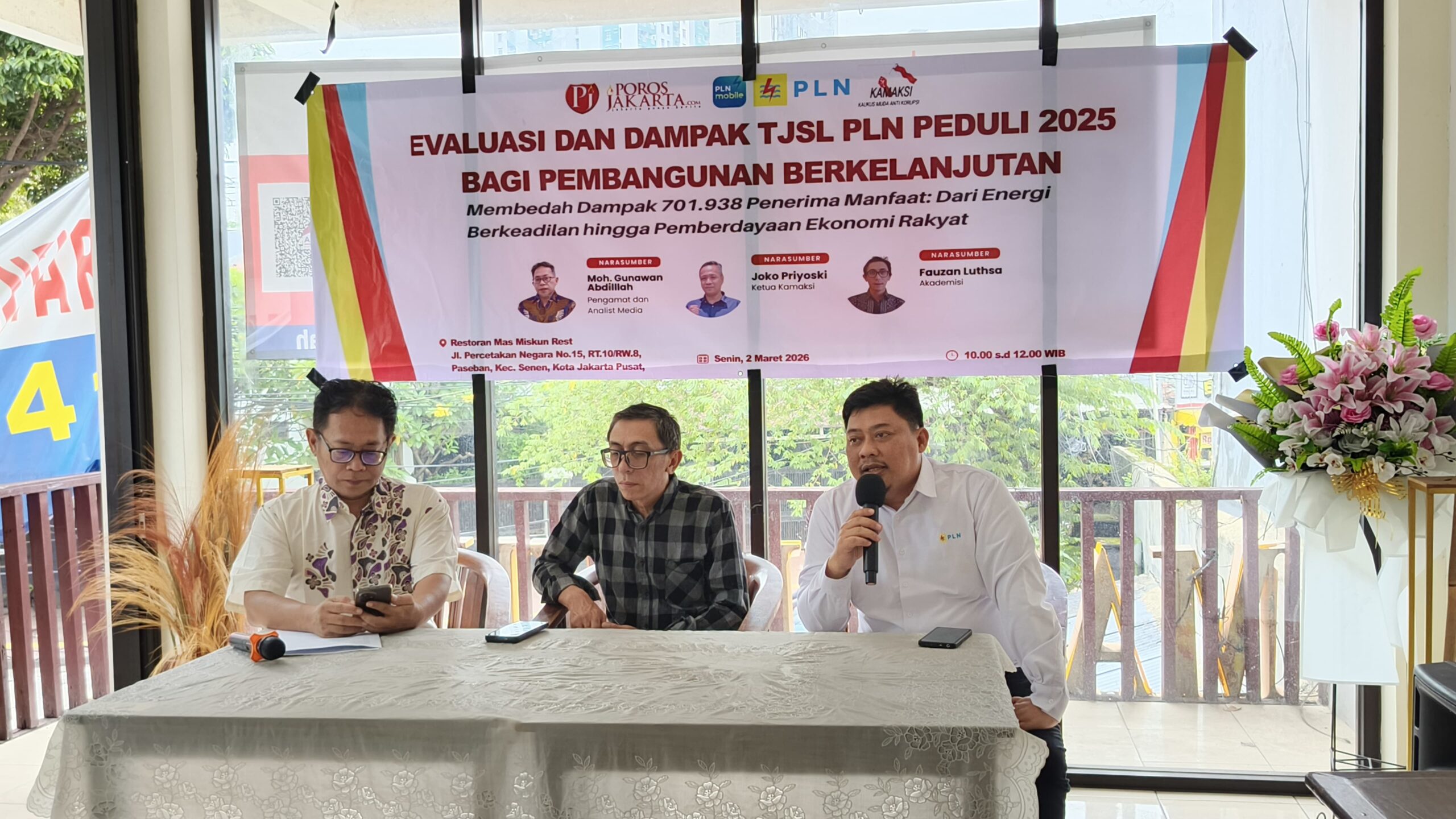 Jakarta – Dalam acara diskusi yang diselenggarakan oleh porosjakarta.com dan Kamaksi di Resto Masmiskun, Jl Percetakan Negara, Jakarta Pusat, Senin (2/3), Septa Aryo Widyanarko, Senior Officer Komunikasi dan TJSL PT PLN UID Jakarta Raya, memaparkan program pemberdayaan UMKM binaan PLN yang tengah berjalan di Jakarta Raya.