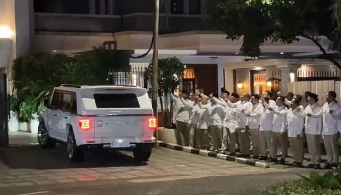 Mobil Prabowo sempat berhenti sesaat di depan barisan para kader, lalu langsung bergerak masuk ke halaman parkir di pekarangan rumah.