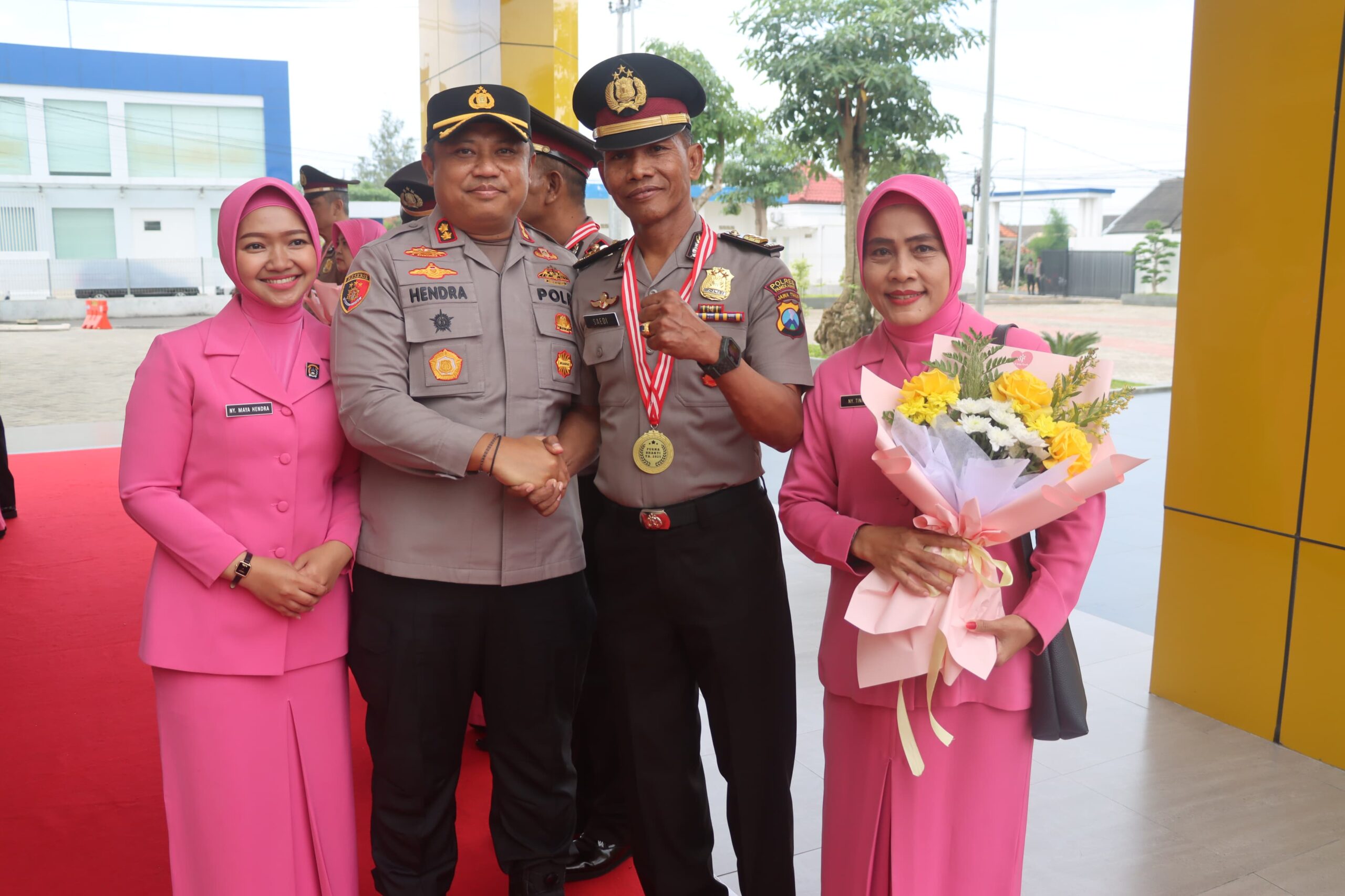 Pelepasan Purna Bakti 17 personel Polres Pamekasan, dipimpin oleh AKBP Hendra Eko Triyulianto didampingi Ibu Ketua Bhayangkari Cabang Pamekasan Ny. Maya Hendra, Rabu (3/12/2025).