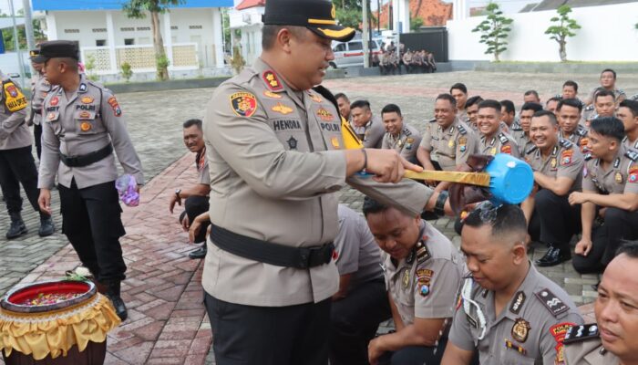 Kapolres Siram Air Kembang, Tradisi Kenaikkan Pangkat Personil Polres Pamekasan Periode 1 Juli 2024