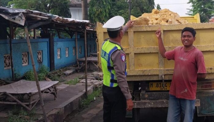 Ragam Satlantas Polres Pamekasan Gencar Berikan Himbuan dan Sosialisasi, Bagi Dump Truk Agar Memasang Terpal 5 Februari 2026
