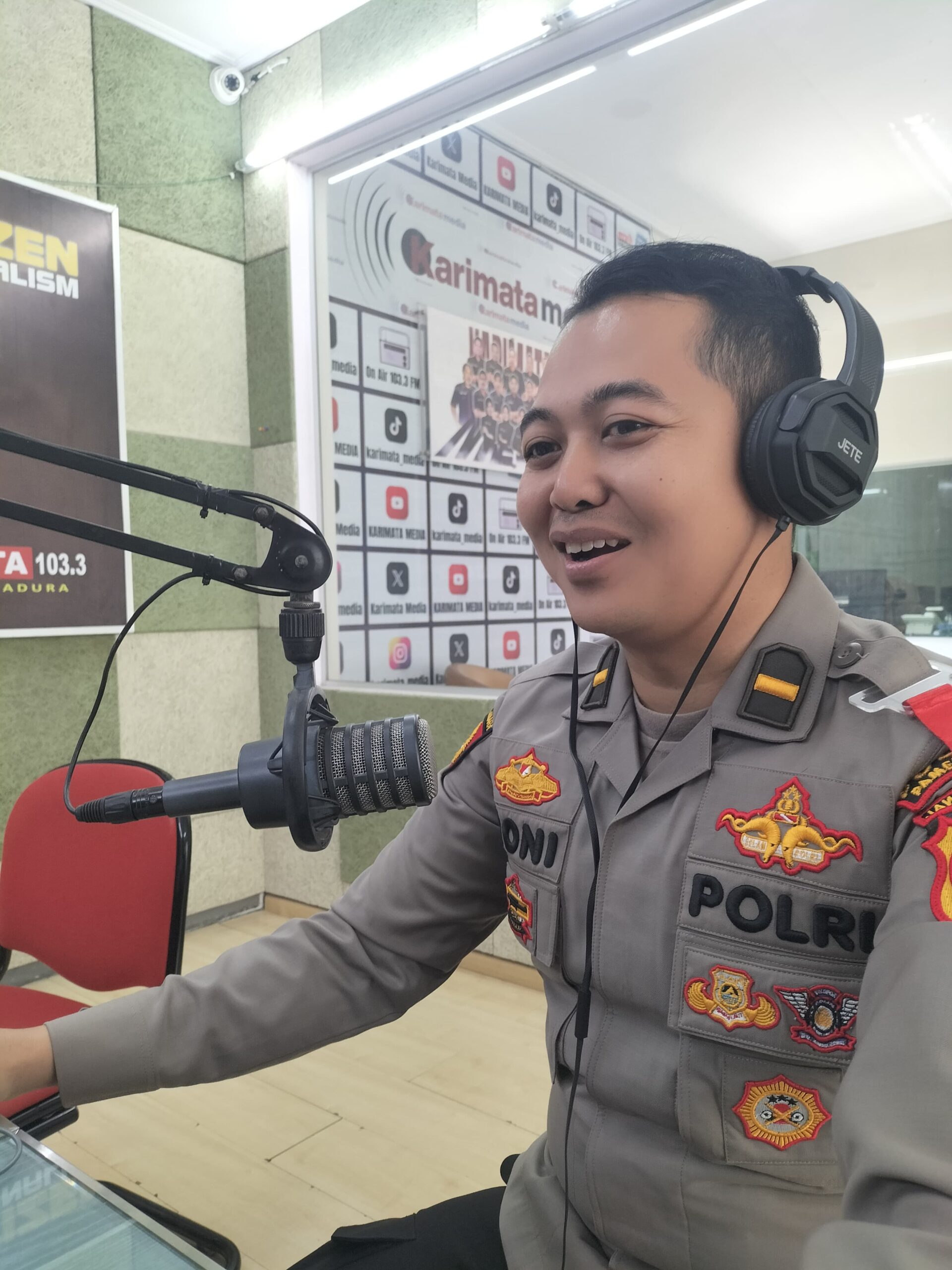 PAMEKASAN – Berbagai cara dilakukan oleh Polres Pamekasan untuk menarik minat pemuda-pemudi di Pamekasan agar menjadi anggota Polri, salah satunya dengan melakukan Talk show di sebuah Radio Karimata FM yang dipandu langsung oleh Kasihumas Polres Pamekasan Ipda Yoni Evan Pratama,S.H., M.M, Jum’at (13/3)