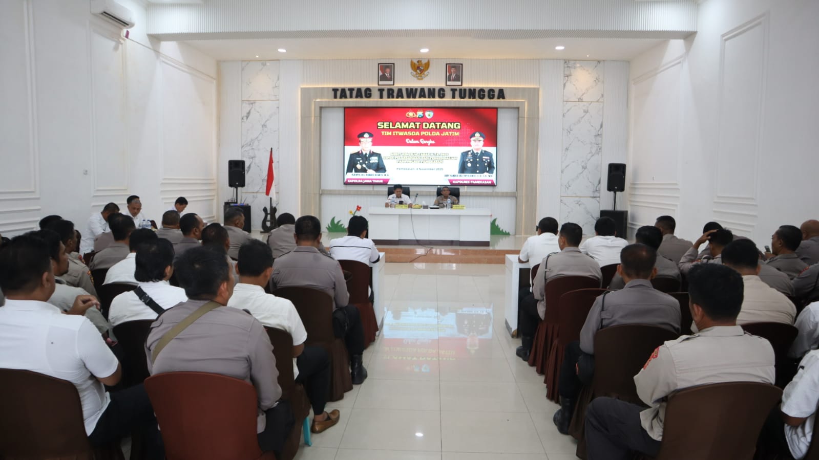 PAMEKASAN – Kepolisian Resor Pamekasan yang merupakan Polres Jajaran Polda Jatim kembali menerima kunjungan dari tim pengawasan dan pemeriksaan (Wasrik) dari Inspektorat Pengawasan Daerah (Itwasda) Polda Jatim tahap II dalam rangka Audit Kinerja Tahap II T.A 2025 Aspek Pelaksanaan dan Pengendalian, di Gedung Tatag Trawang Tungga Polres Pamekasan, Selasa (4/11/2025).